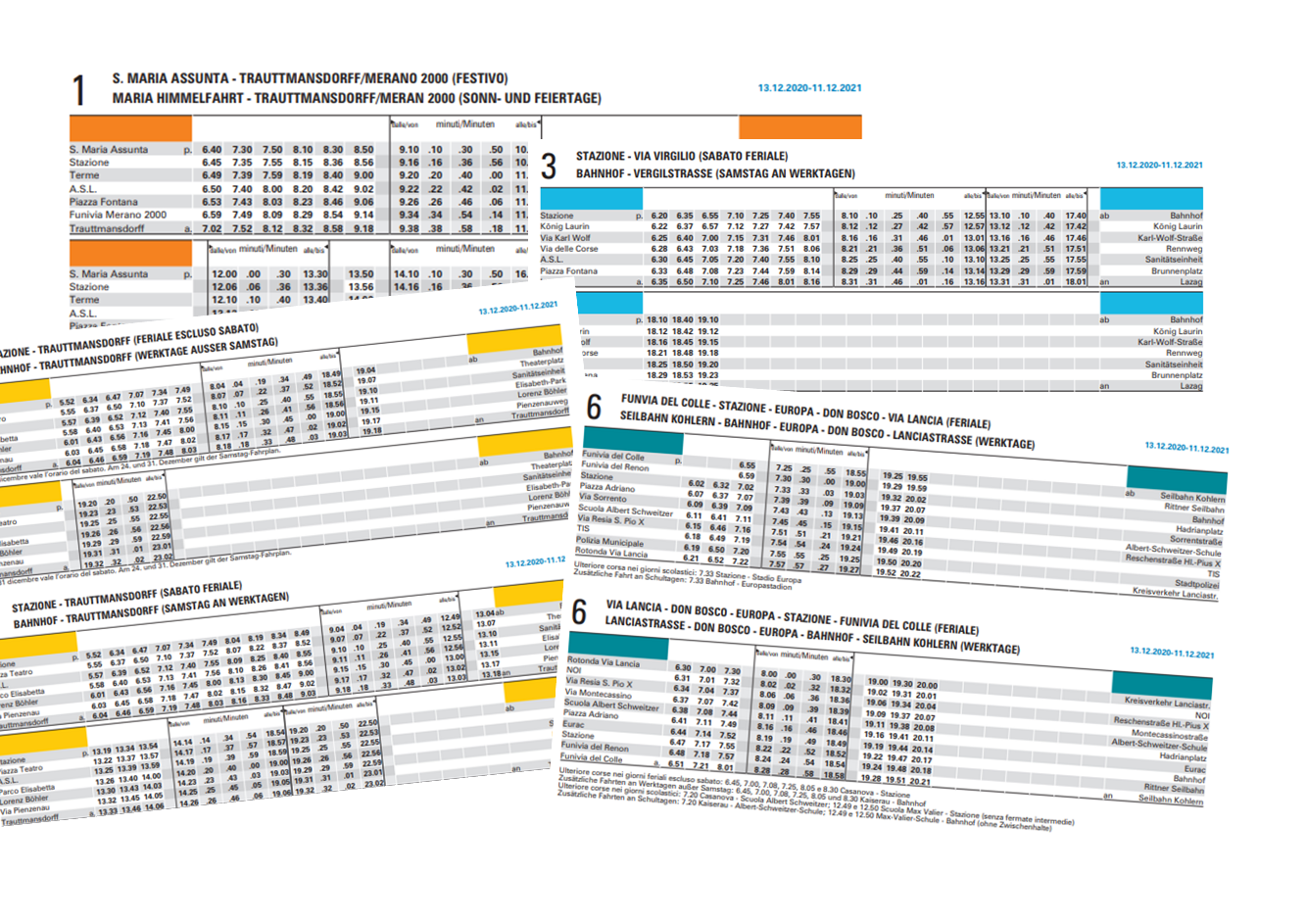 Percorso con una frequenza di 30 minuti fino alla stazione e per via delle Palade. La zona artigianale di Merano è coperta dalla nuova linea 5 e Foresta dalla nuova linea 217.